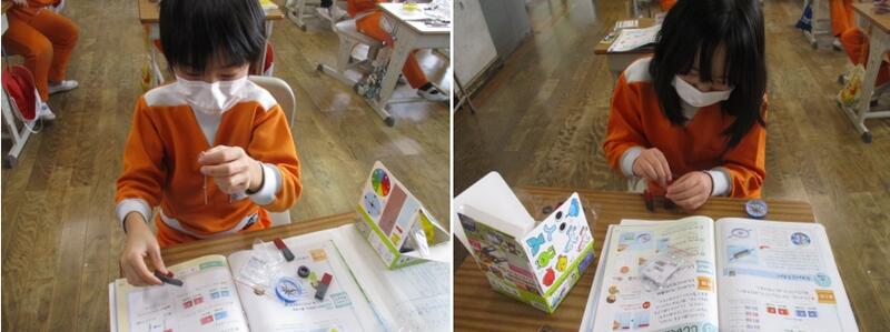 図形カードを使って、自分で考えたり、グループで話し合ったりすることで、いろいろな考え方に気付くことができました。みんなで学ぶといろいろな考え方に気付き、自分の学習が深まりますね。学校で学ぶ意義を感じた授業でした。