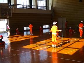 3・4年生は体育館で縄跳び記録会と同じような流れで練習に取り組んでいました。