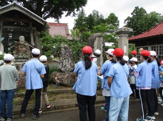 2021年7月2日 12時30分7月2日(金)の午前、6年生は、総合的な学習の時間を活用して、地域学習に出かけました。地域の歴史に詳しい佐藤様、小野様にご同行願い、出発しました。