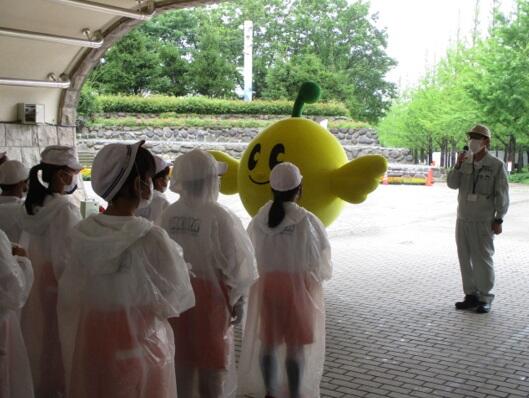 花広場には、県北建設事務所の所長の相澤様、主幹兼企画管理部長の白石様をはじめ係の方々がいらっしゃいました。県のマスコット キビタンも迎えてくれました。