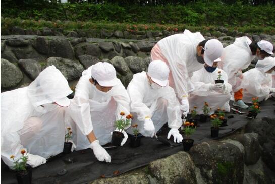 2021年7月5日 10時40分7月5日(月)の午前10時に、「道で咲かせよう東北の花プロジェクト~復興五輪版~」のイベントに参加しました。5・6年生による花の定植作業を、あづま総合運動公園の花広場で行いました。
