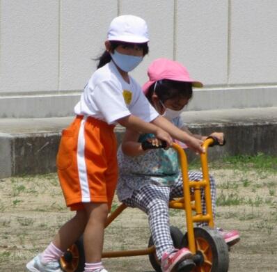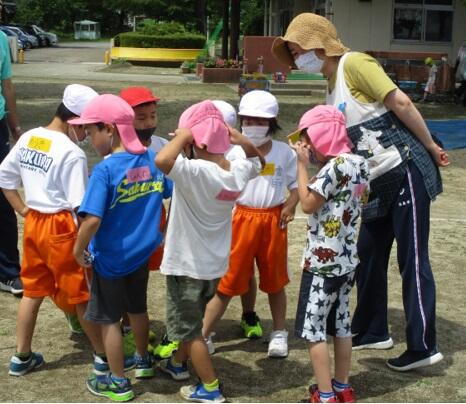 2021年7月6日 11時00分7月6日(火)の午前10時から、さくら幼稚園の年長さんと本校の1年生が、屋外遊びを通して交流しました。