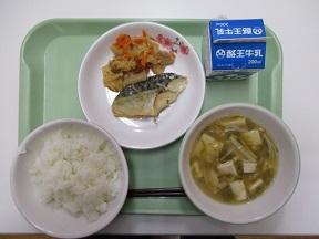 ご飯 あおさの味噌汁 さばの塩焼き 凍み大根の煮物