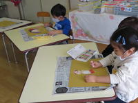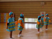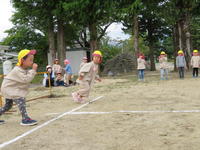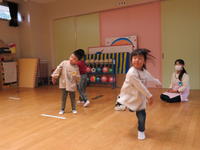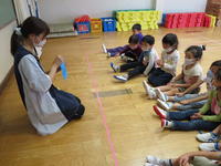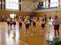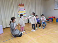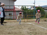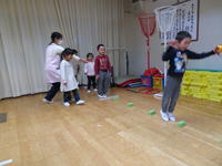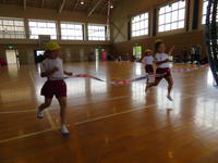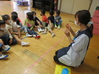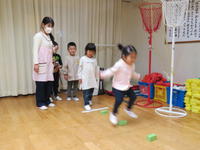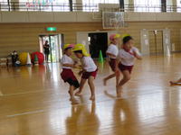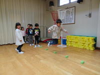 年少(たんぽぽ組)は、運動能力調査を実施するにあたり、各測定項目の運動のやりかた等を正しく理解するために練習を行いました。子どもたちは、理解が早く各運動をスムーズに行うことができました。また、子どもたちは、運動会の閉会式でエルマーからいただいた、ブーブーロケットを上手に投げていました。本番の、調査結果が楽しみです。