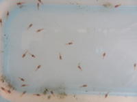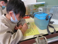年少(たんぽぽ組)が飼育しているザリガニが3週間前からお腹に卵を抱えていましたが、無事に赤ちゃんが誕生しました。非常に小さいですがザリガニの形をしていて元気よく泳ぎ回っていました。子どもたちは、非常に喜んで、興味をもって虫眼鏡で観察したり本で調べたりしていました。