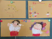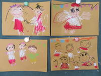 年少(たんぽぽ組)は、10月3日(土)に開催した運動会の絵を描きました。子どもたちは、初めての運動会ということで、わくわくどきどきしたり、がんばったりしたことを、それぞれに画用紙いっぱいに表現しました。子どもたちの感動が作品から伝わってきます。