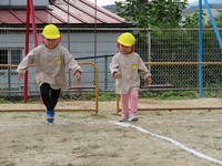 年少(たんぽぽ組)、年長(ちゅうりっぷ組)が合同で運動能力テストの25M走の測定を行いました。子どもたちは、先日行った運動会のために全力で走る機会が多くなったこともあり、入学・進級したころと比べて、かなり速く走ることができるようになりました。