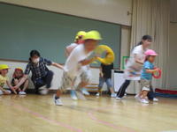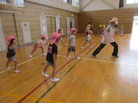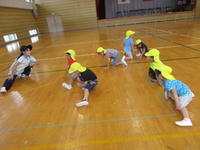 10月3日(土)の運動会に向けて、佐倉小学校の体育館で徐々に練習を始めました!年少(たんぽぽ組)は、準備運動の後に、徒競走のスタートとゴールの位置を確認し、実際に走ってみました。年長(ちゅうりっぷ組)も年少と同様に行った後に、リレーの練習を行いました。年少は、年長のリレーの走りを見学し、その速さに驚きながら一生懸命に応援していました。