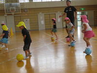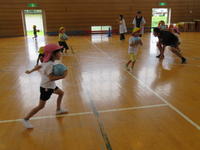 AC福島ユナイテッド、福島県サッカー協会キッズ委員会県北地区の全面的なご協力を得て、佐倉小学校の体育館をお借り、サッカー教室を開催しました。コーチの石井紀人様、大比良圭太様からご指導を受けて、いろいろな動きをしながら走ったり、ボールと仲良しになるためにボールを手や足を使ってコントロールしたりしました。子どもたちは、体育館の中を大粒の汗を流しながら所狭しと動き回っていました。最後には、二つに分かれてゲームを行い、サッカーの醍醐味を味わいました。子どもたち全員が、たいへんサッカーが好きになったようです。