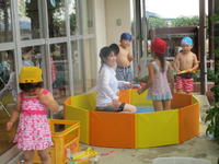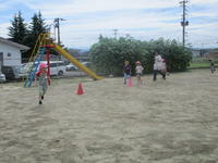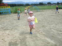 年長(ちゅうりっぷ組)は、園庭でランニングをしたり、それぞれに外で好きな遊びをしたり、小学校のプールで水遊びをしたりし、思いっきり体を動かしました。