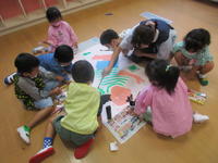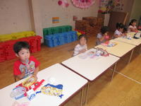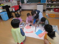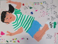 年長(ちゅうりっぷ組)は、8月生まれのお友達の等身大の絵を描きました。子どもたちは、お友達の髪の毛や目、鼻などの特徴をよく観察し、本人そっくりに描いていました。