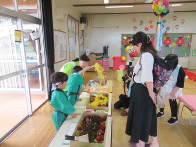 元気よい店員さんばかりでした。お家の方々がとっても楽しそうに遊んでいた姿を見て、園児たちも大喜びでした。