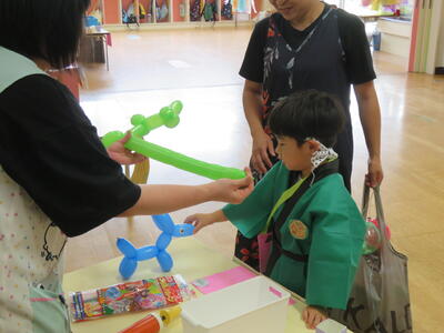 水ヨーヨー 風船 くじ引き スーパーボール キャッチャー の5つです。本当は綿あめ屋さんもあったのですが、機械が壊れてしまい残念ながらできませんでした。