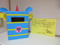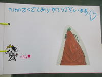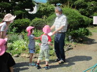 6月5日(金)に年長(ちゅうりっぷ組)は、竹やぶ探検でお世話になりました高橋文男さん宅に、自分たちが作成した作品にお礼の言葉を書いたものを持って伺いました。代表して二人の園児がお礼の言葉を述べて、作品を贈りました。高橋さんはたいへん感動し、今後とも幼稚園との交流を続けていきたいと話されました。また、7月には、七夕飾りをつくるために笹竹をいただきに伺う予定です。