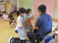 6月11日(木)に、新型コロナウイルス感染防止の影響で遅れていました内科検診を実施しました。子どもたちは、緊張した面持ちで自分の順番が来るのを静かに座って待っていました。また、校医の先生の前では、きちんと自分の名前を言い、検診が終了した際には、お礼を言うことができました。今回の検診では、全員異常なしとのことで、順調に成長しているようで、嬉しく思います。