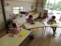 6月11日(木)、年少(たんぽぽ組)の子どもたちが、待ちに待ったお弁当が始まりました。前の日から興奮気味で、当日も登園するとすぐにお弁当の話をしたりしていました。子どもたちが早くお弁当を食べたくて落ち着かない状態のため、予定していた時刻より早めにお弁当の時間にしました。3密に注意しながら楽しくお弁当を食べることができ、全員完食できました。