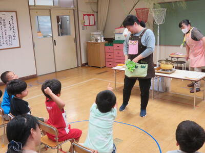担任の先生がエプロンシアター 「ピーマンマンのお米ができるまで」をやりました。