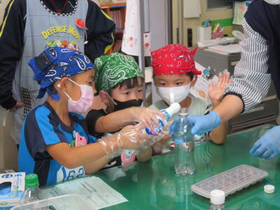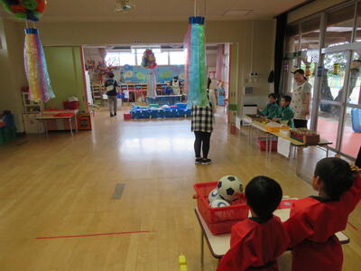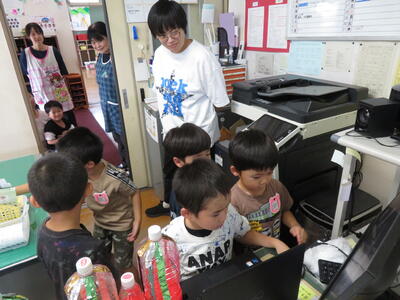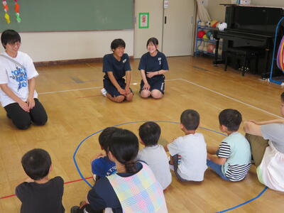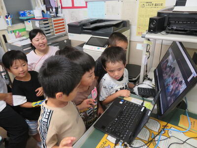 市のシステムを活用し、岡山幼稚園とオンライン交流をしました。