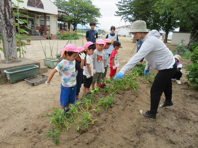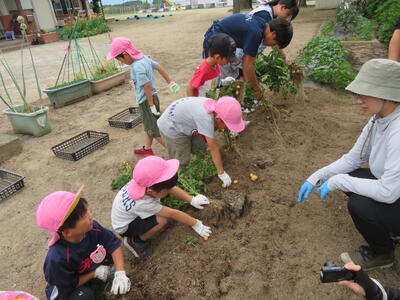 一斉に引き抜きました。「うわー ジャガイモがついてる!」