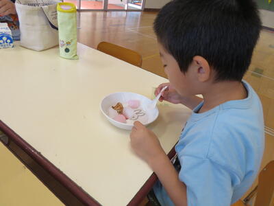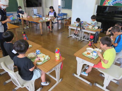 おかわりもいっぱいしました。今日も完食です。小学校の先生が驚くくらいに食欲旺盛です。