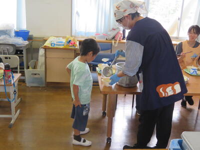 食べ終わった人から昨日つくったアイスのデザートをいただきました。