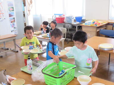 今日は月に1回の給食をいただける日です。さっそく小学校へ出かけました。