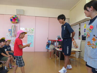 1週間一緒に遊んでくれた西信中学校のお兄さん お姉さんとのお別れの会をしました。