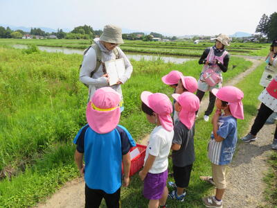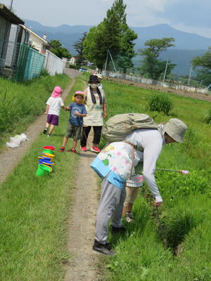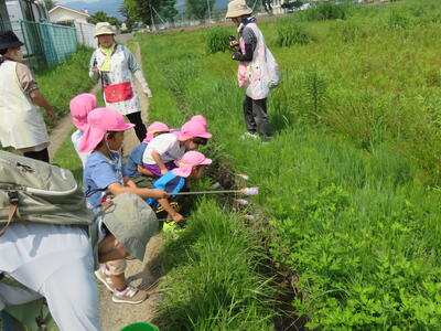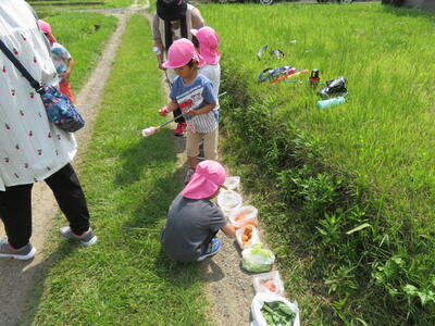 お礼の手紙を渡し終わってから、園近くの用水路にザリガニ釣りに行きました。