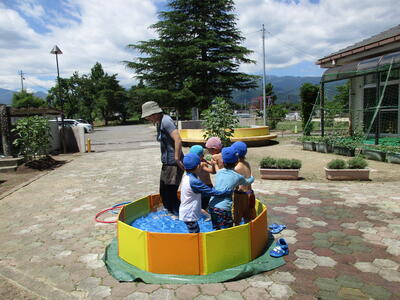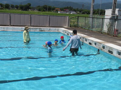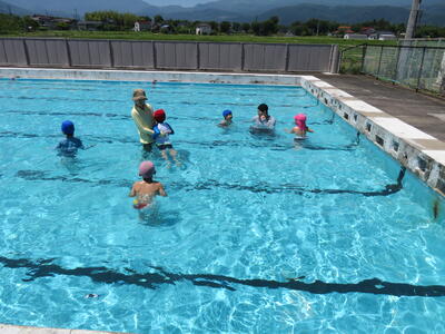 今日は幼児用プールの他に、特別に小学生のプールにも入りました。