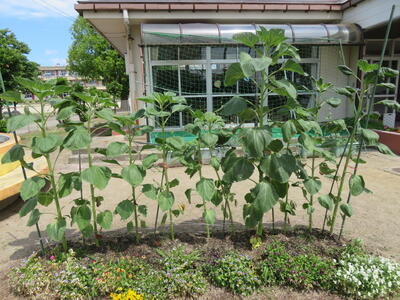 ヒマワリだいぶ大きくなってきました。1mは越えました。去年みたいに2m超えするでしょうか?