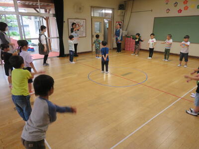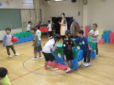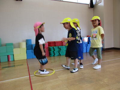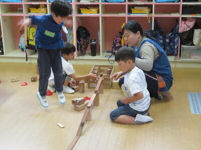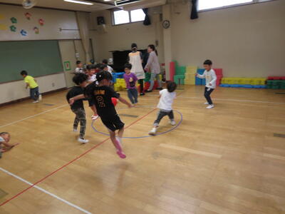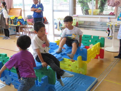 いよいよ好きな遊びの開始です。3回目の今回は、これまで以上に交流している姿が随所にみられました。「みんないっしょにやろうよ」と呼びかける子もいました。