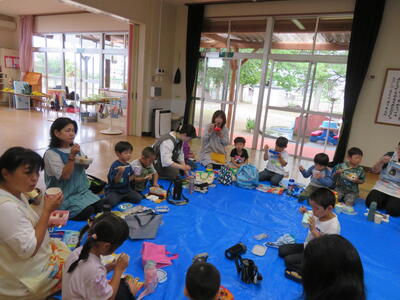 お楽しみのお弁当タイムです。みんなで楽しく食べました。