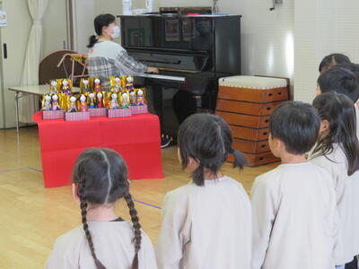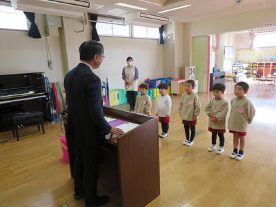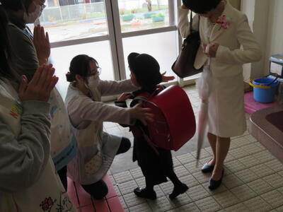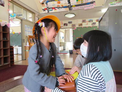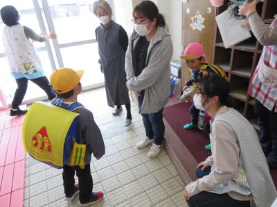 連日、新1年生がランドセル姿で、幼稚園に来てくれました。
