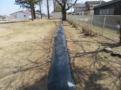 畑も耕し、マルチをかけました。ジャガイモとサツマイモトマトなどを、みんなで植える予定です。