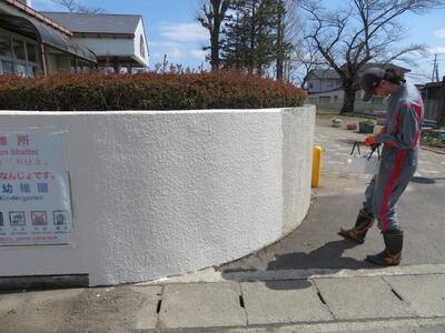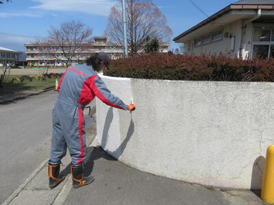 佐倉小学校の技能主事さんが、門塀のペンキ塗りをしてくれています。