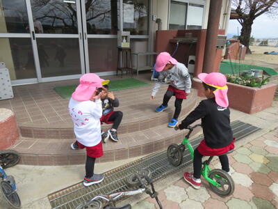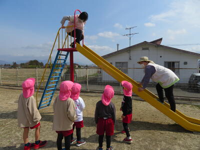 始業式終了後、ちゅうりっぷさんたちは幼稚園の遊具の使い方を再確認しました。