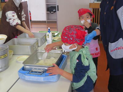配食から片付けまで、1年生かと見間違えるくらいに上手にできました。