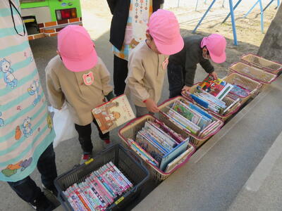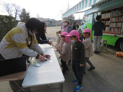 小学校へしのぶ号が来校したので、園児たちも本を借りました。