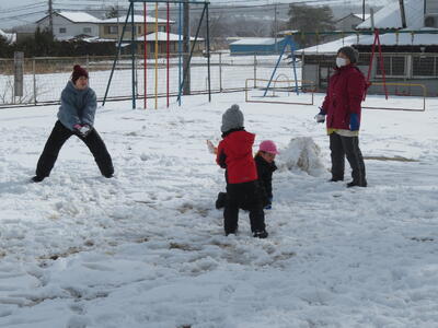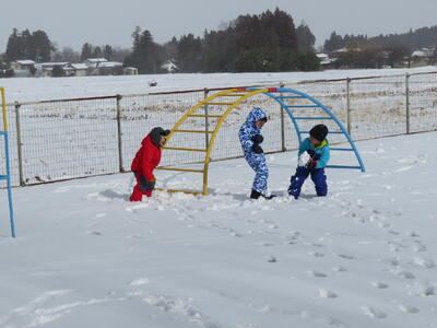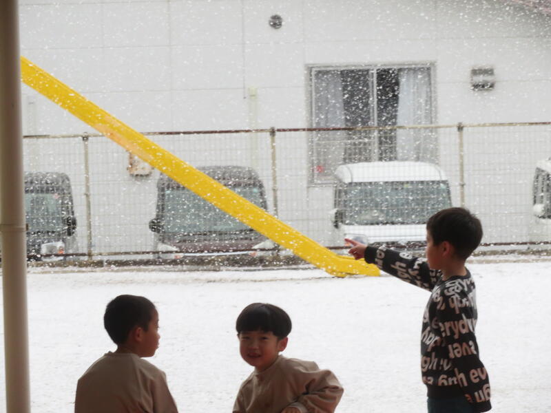 風が強く肌寒い日となりましたが、園児たちは(先生も)園庭で元気に遊んでいます。