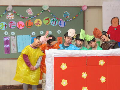 そして、みんなの発表の時間です。楽しい劇を披露してくれました。動きやせりふを工夫した、上手な発表でした。
