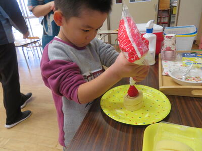 最後はお待ちかね。サンドイッチとケーキを食べる時間です。ケーキは自分で飾りました。