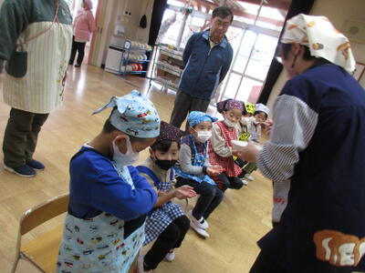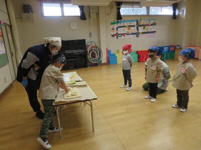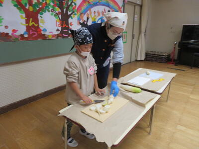 ちゅうりっぷさんたちは大根を切ってくれました。とっても上手でした。