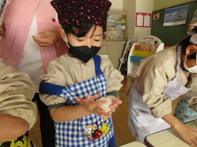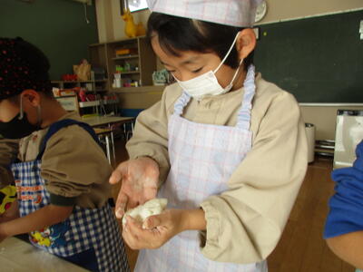 お家に持ち帰る丸餅をつくりました。ご家族で食べてください。