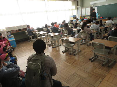 校舎内に入り、授業の様子を見さてもらいました。みんなしっかりお話を聞いて学習していました。やっぱり小学生の兄さんお姉さんはお話の聞き方が上手ですね。