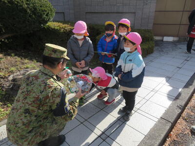 お世話していただいた自衛官へ、お礼のリースやお手紙などをお渡ししました。