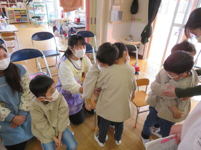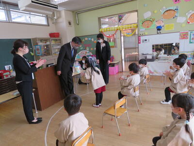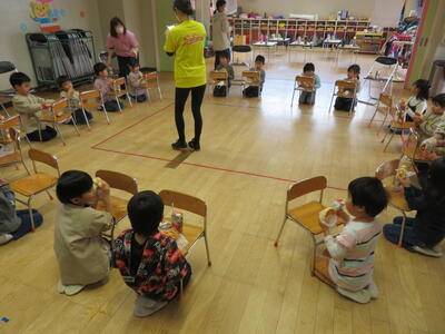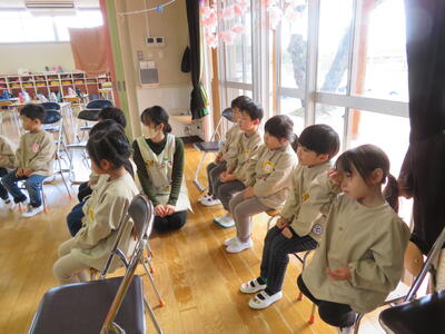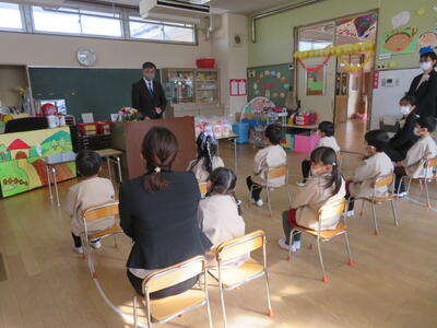 子どもたちは真剣な眼差しで聞いていました。もうすぐ年長さんになる子は違いますね!