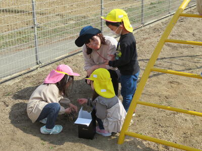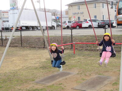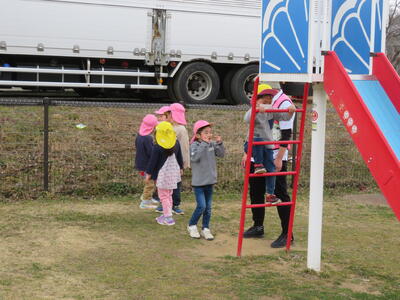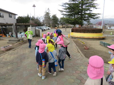 はじめに、新しくできた公園をみました。まだ使用できないため、外から見ただけですが、たんぽぽ組さんはちゅうりっぷ組になったらたくさん遊びに来られそうです。