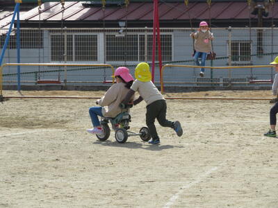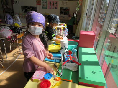 自然に一緒になって、遊びはじめました。一緒に遊べるのは、預かり保育を除くと今日が最後です。