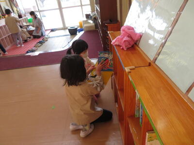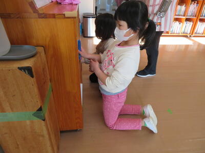 1年間お世話になった保育室や本棚や玄関を一生懸命きれいにしてくれました。