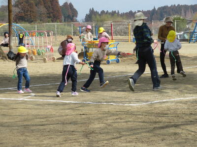 修了証書授与式前日の今日、朝最後の練習を終えて、みんなで園庭で遊びました。